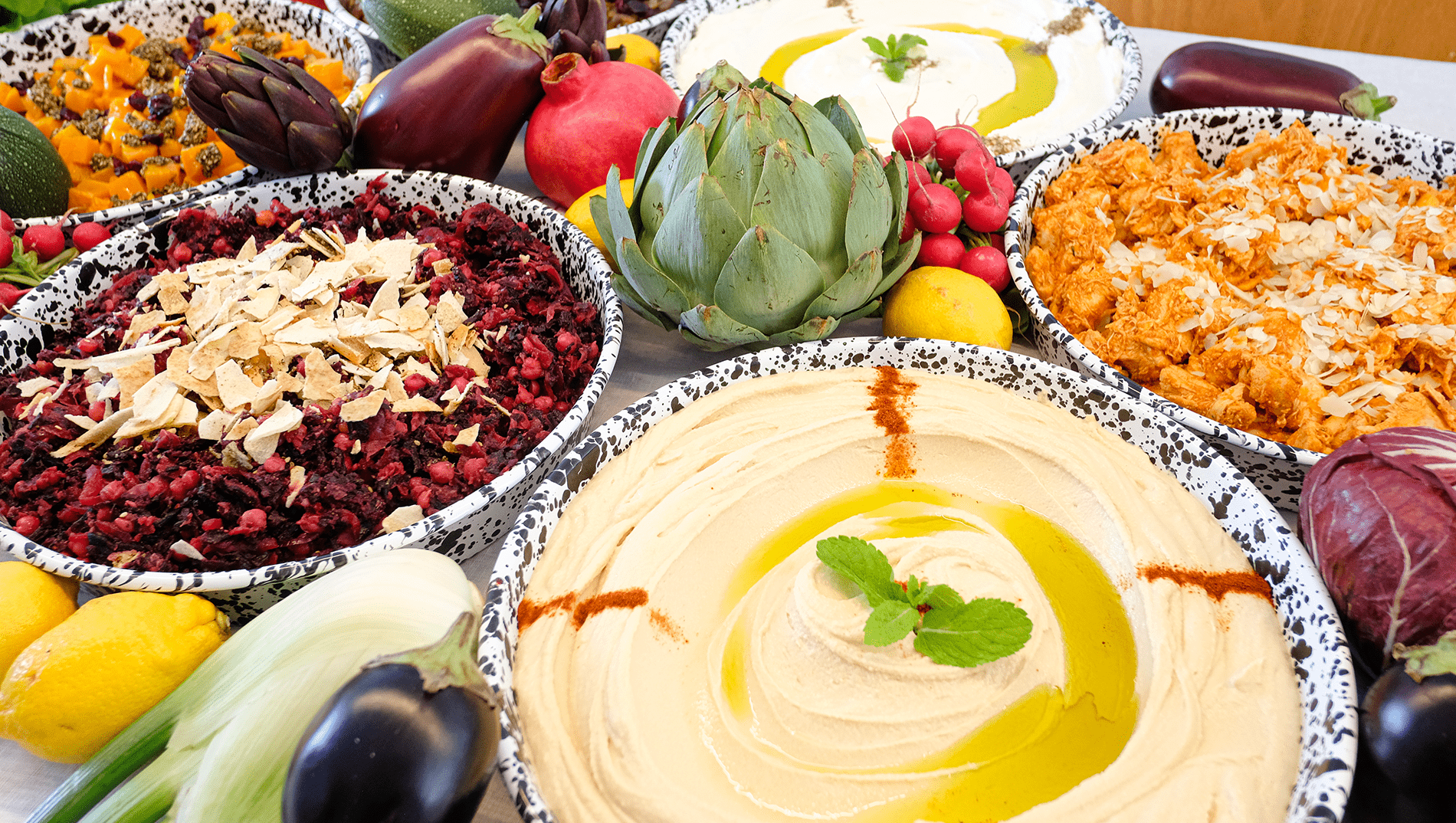 Check out our catering menu and let us cater your next event. Whether it’s work gatherings, birthdays, or special occasions, we’ve got you covered. Choose from our selection of buffet options for a hearty lunch or dinner, or add some unique bites to your next borrel. We can also bring a live saj station and serve freshly baked manoushe to your guests.